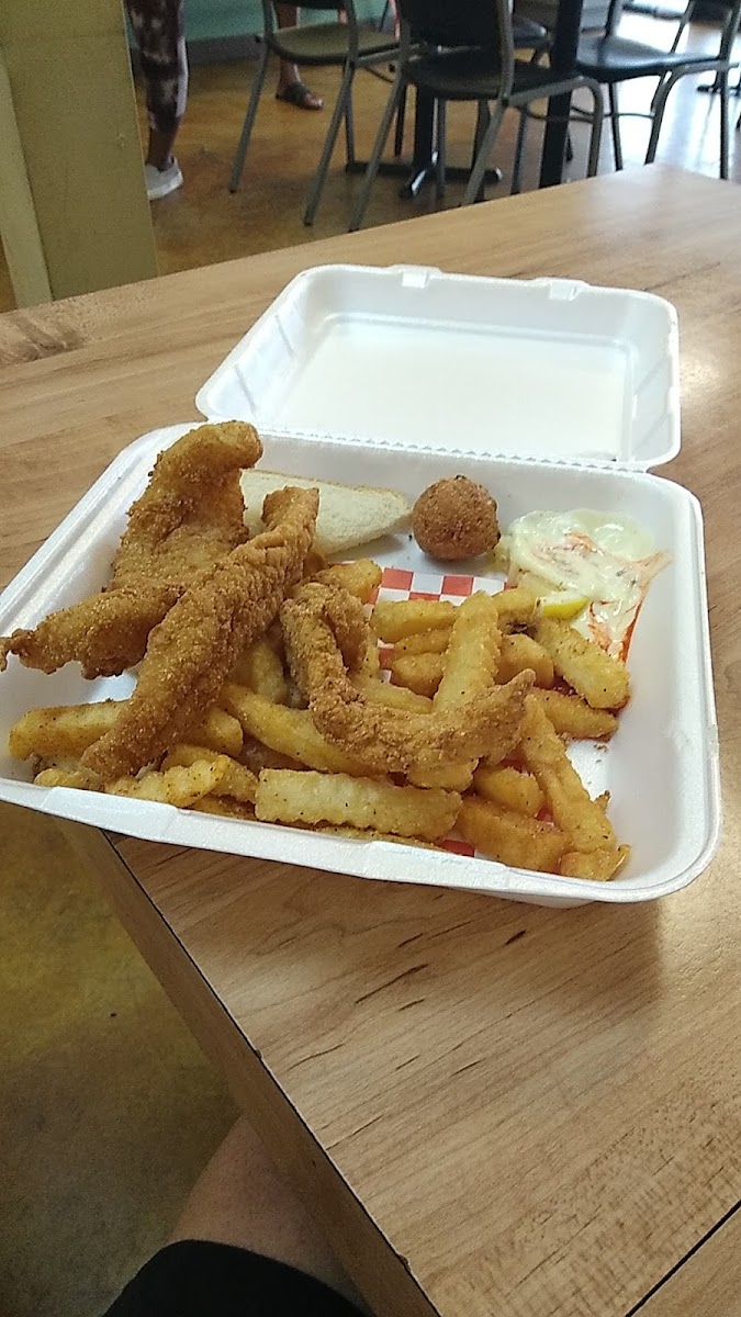 This red snapper and fries are so good omg. It's seasoned just right. The spring rolls are a bit heavy on the garlic but very good. They do have fresh whole fish too and it is an actual fish market. They have some other options too. Great, kind service.